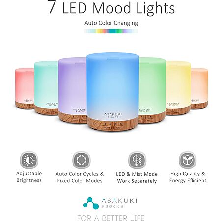 Prime Members: Asakuki 300ml LED Essential Oil Diffuser & Humidifier (Brown) $11.99 + Free Shipping