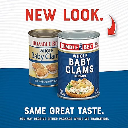 Bumble Bee Whole Baby Canned Clams, 10 oz Can - Ready to Eat - 14g Protein per Serving - Gluten Free~$1.01 After Coupon & S&S @ Amazon