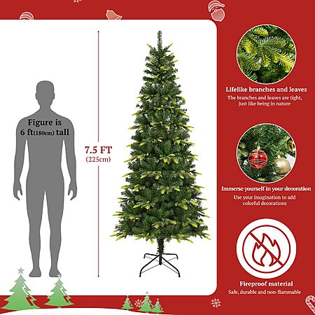 7.5' Uten Pencil Christmas Tree with Mixed 800 Branch Tips $43.30 + Free S/H