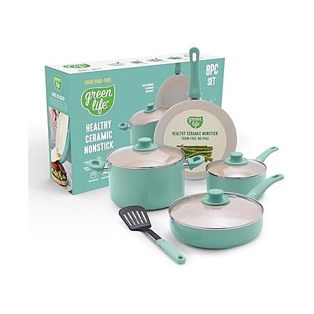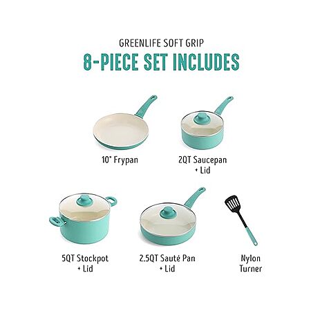 8-Piece GreenLife Nonkstick Cookware Set (Turquoise) $19.99 + Free Shipping w/ Prime