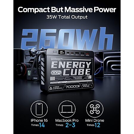 Just saw this. MOVE SPEED 70000mAh Power Bank, 35W PD 3.0 Fast Charging Portable Charger, 4 Outputs 2 Inputs High Capacity USB C Battery Pack with LED Display for Phone Tablet Outdoor Camping Office