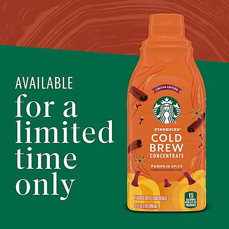 Amazon [amazon.com] has 32-Oz Starbucks Cold Brew Coffee Concentrate (Pumpkin Spice) for $4.64. Shipping is free with Prime or on $35+ orders. This deal may not last long.