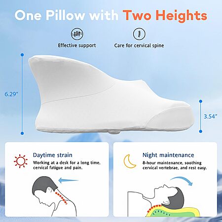 • Dual-Height Cervical Pillow: 6.29" thickness relieves pillow for side sleepers with 72% shoulder pressure reduction, while 3.54" height aligns back/stomach sleepers for neutral neck positioning.