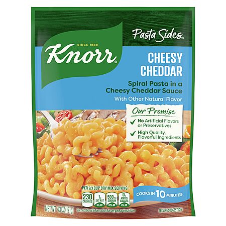 Knorr Pasta Sides Cheesy Cheddar Rotini For Delicious Quick Pasta Side Dishes No Artificial Flavors, No Preservatives, No Added MSG 4.3 oz & More~$0.77 After Coupon & S&S @ Amazon