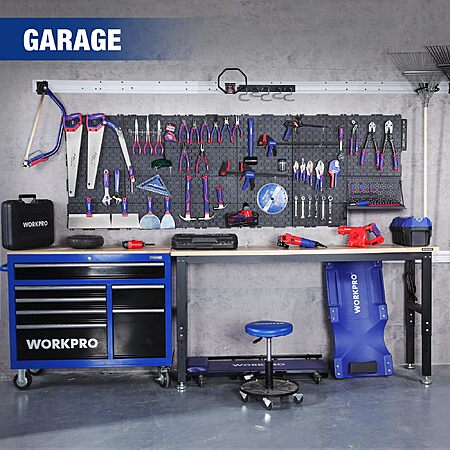 2-Pack WORKPRO 16" x 16" Foldable Steel Panel Peg Board w/ Round Holes & Vertical Slots (Black) $21.49 + Free Shipping w/ Prime or on $35+