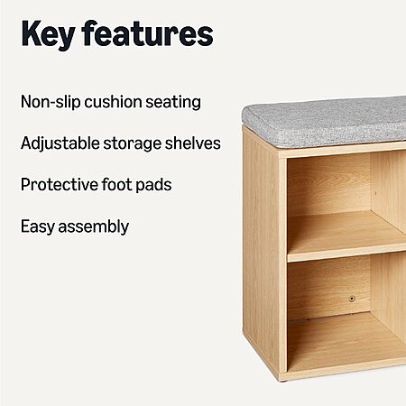 $40:Amazon Basics Shoe Storage Bench with Cushion, Shoe Rack 6 Cubbies, Adjustable Shelves, Oak Finish