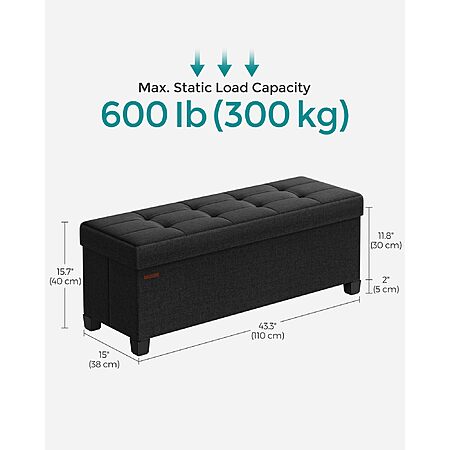 43" SONGMICS Foldable Storage Ottoman Bench (Ink Black)