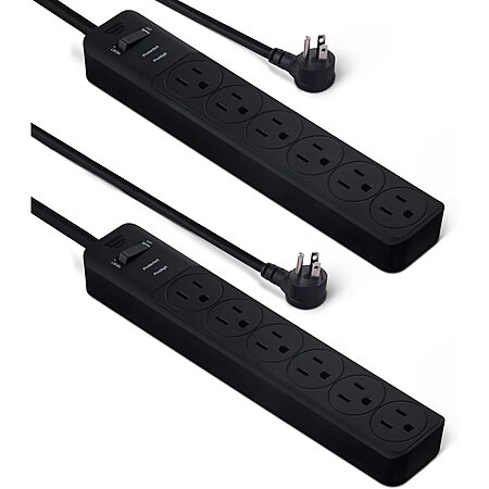 Amazon[amazon.com] has 2-Pack 2' Amazon Basics 6-Outlet 600 Joule Surge Protector Power Strip (Black) for $5.86. Shipping is free with Prime or on $35+ orders.