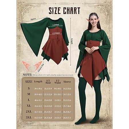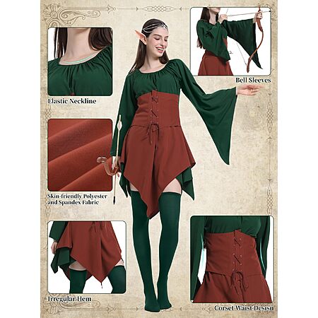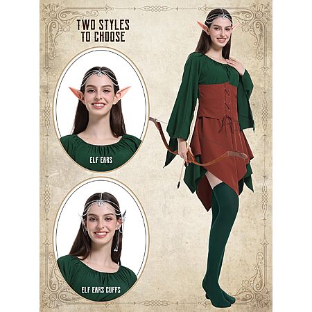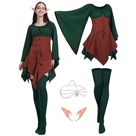 4-Piece Fairy Halloween Costume: Renaissance Elf Medieval Dress w/ Ears & Head Chain $9.99 + Free Shipping w/ Prime or on $35+
