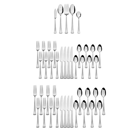 Set includes: 3-piece hostess set and 8 of each: salad fork, dinner fork, dinner knife, dinner spoon, teaspoon & extra teaspoon.