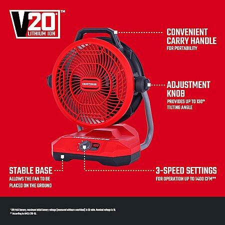 CRAFTSMAN 12" 20-Volt 3-Speed High Velocity Indoor Red and black Industrial Fan (Tool Only) $49 + Free Shipping