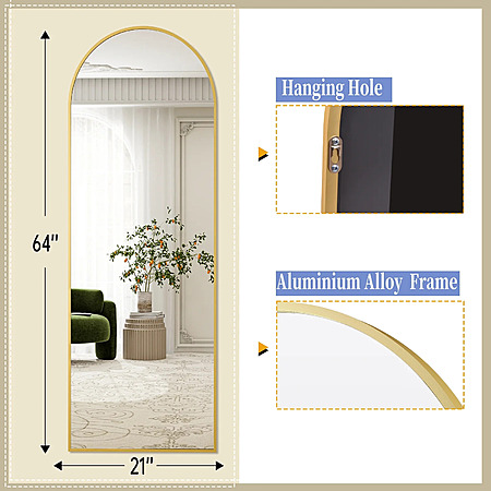 BeautyPeak 64" x 21" Full Length Arched Mirror (Gold or Black) $43.79 + Free Shipping