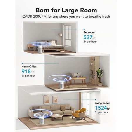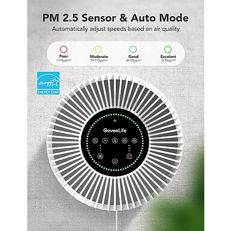 Model: GoveeLife Smart Air Purifier for Home Large Room Up to 1524 sq.ft.with Washable Filter, Integrated PM 2.5 Air Quality Sensor,WiFi, H13 True HEPA Air Purifier for Smoke, Wildfire, Pet Hair,24dB, White
