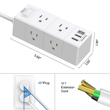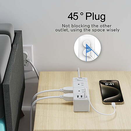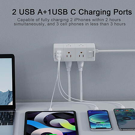 Product Description: | The surge protector power strip features 9 charging ports with a three-sided design, offering a space-saving layout. The widely spaced outlets accommodate bulky plugs and adapters with ease, providing ample room for efficient cable management and reducing clutter for a clean and organized setup. The 5-foot long extension cord adds flexibility and convenience, making it ideal for use in homes, offices, dormitories, and other spaces. Multi-plug socket: The power strip comes with 6 AC sockets, 2 USB-A ports and 1 USB-C port, which can charge up to 9 plugged-in devices at the same time, suitable for mobile phones, tablets, computers and other USB devices. USB Smart Charging: USB-A port can charge up to 5V/2.4A, USB C port can charge up to 5V/3A (total 5V/3A), built-in smart technology can automatically detect charging devices and provide the optimal charging speed to achieve faster charging efficiency. 5 Inch Extension Cable: This power strip comes with a 5-inch flat extension cable for more flexibility and convenience in use, and the mounting holes on the back allow it to be securely mounted in various scenarios such as under countertops, walls and other space-saving applications. Flat Plug Power Strip: The 45-degree angle of the power plug avoids interference with other plugs in vertical wall sockets and meets your needs. Our After-Sale Service:ETL Certified, Our friendly and reliable customer service will respond to you within 24 hours. You can purchase with confidence, with our 30-day return and 12-month warranty. |