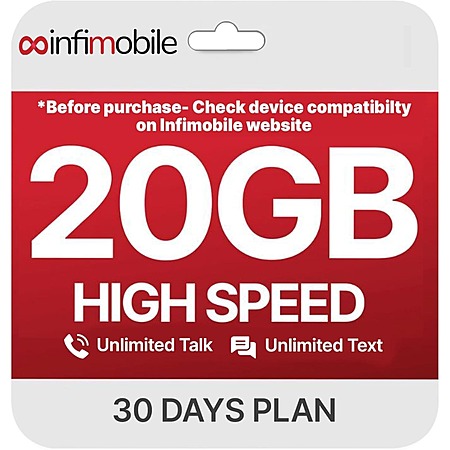 Prime Members: 1-Month Infimobile Prepaid Mobile Unlimited Talk / Text + 20GB Data / Month $9 (New Customers) + Free Shipping