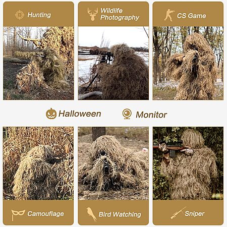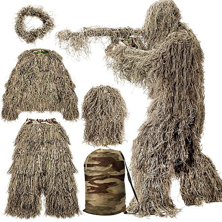 MOPHOTO 5 in 1 Ghillie Suit 3D Camouflage Hunting Suits - Jacket, Pants, Hood, Carry Bag for Adults & Youth, M/L/XL/XXL for $22.78