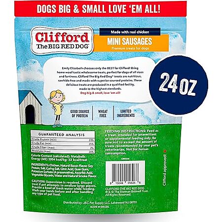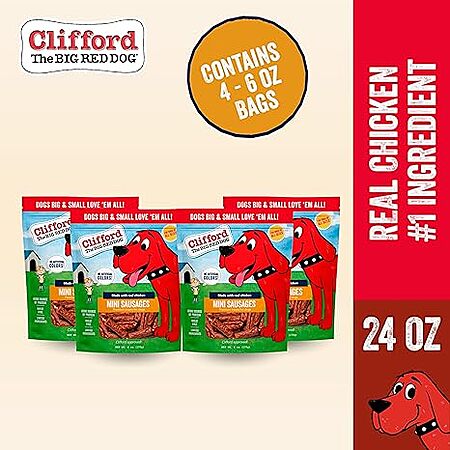 4-Pack 6-Oz Clifford The Big Red Dog Mini Sausage Dog Treats $10 w/ S&S + Free Shipping w/ Prime or $35+ Orders