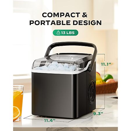 Silonn Countertop Ice Maker, 9 Cubes Ready in 6 Mins, 26lbs in 24Hrs, Portable Ice Machine with Self-Cleaning, 2 Sizes of Bullet Ice for Home/Kitchen/Party/RV, Black $37.1