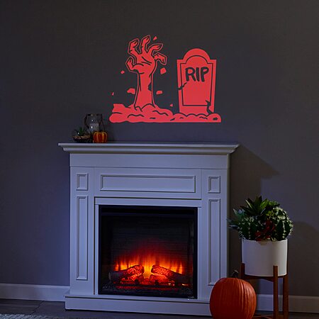 SPOOKY ZOMBIE HALLOWEEN DECORATION - Add a fun and spooky Zombie hand and RIP light projector to your yard. This glowing red zombie hand is sure to thrill trick-or-treaters this Halloween.