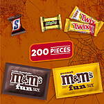 Contains one (1) 76.94-ounce, 200-count bulk candy bag filled with M&M'S, TWIX, MILKY WAY, & 3 MUSKETEERS Milk Chocolate Halloween Candy