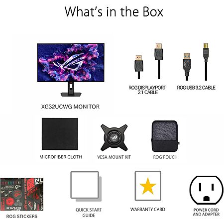 Model: ASUS ROG Strix 32” 4K OLED Gaming Monitor (XG32UCWG) - TrueBlack Glossy OLED, Dual Mode (4K@165Hz, FHD@330Hz), 0.03ms, G-SYNC Compatible, Neo Proximity Sensor, Auto KVM, USB-C, HDMI 2.1, 3 yr warranty