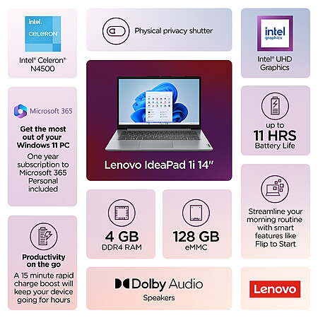 Lenovo IdeaPad 1i 14" Laptop (N4500 / 4GB RAM / 128GB SSD) + 12-Month Microsoft 365 $129 + Free Shipping