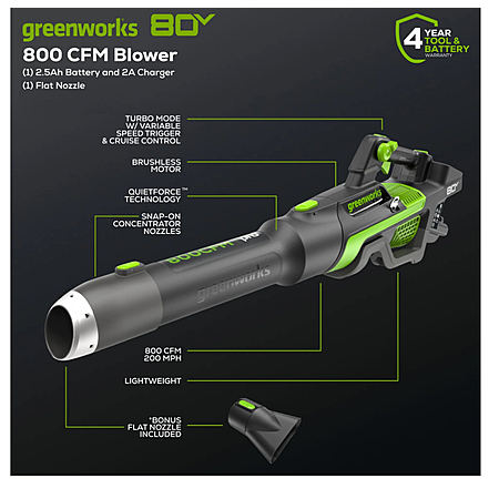 Greenworks Refurbished 80v 800cfm blower $117