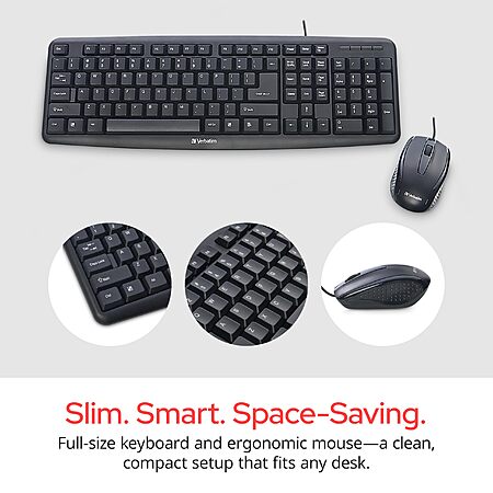YMMV: Verbatim Slimline Wired Full-Size Keyboard and Mouse Combo (Black) $10.67 + Free Shipping w/ Prime or on $35+