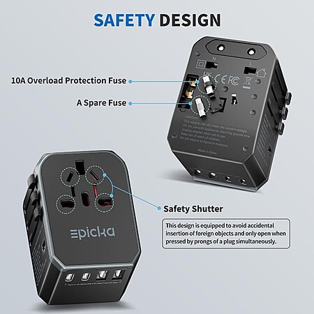 EPICKA Universal Travel Adapter, International Power Adapter with 2 USB-A & 3 USB-C Ports Wall Charger - Worldwide Travel Essentials, European Travel Plug Adapter - $18.99