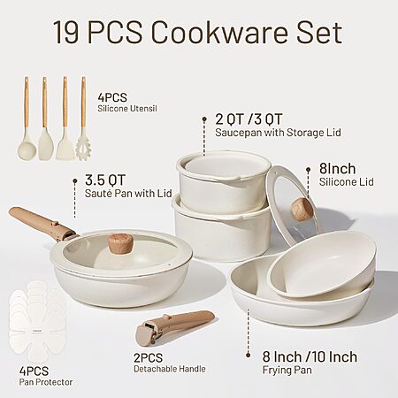 CAROTE 19pcs Pots and Pans Non Stick, Cookware Sets Detachable Handle, Induction Kitchen Pots and Pans,NonStick Cooking Set, Oven/Dishwasher/Fridge Safe, Space Saving $63.99