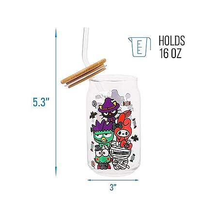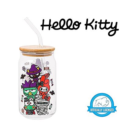 16-Ounce Silver Buffalo Hello Kitty & Friends Halloween Glass Tumbler w/ Bamboo Lid & Glass Straw (Spooky Badtz-Maru, Chococat, My Melody & Keroppi) $4.99 + Free Shipping w/ Prime