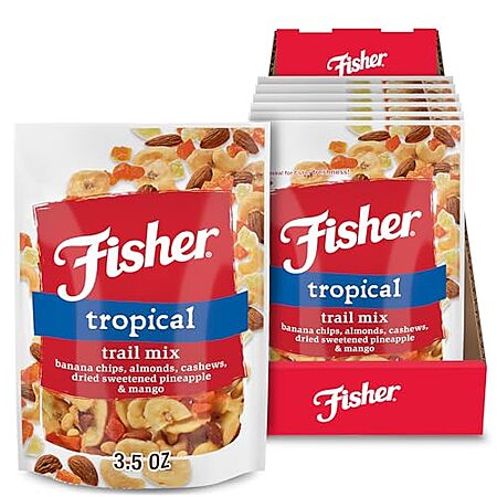 Amazon[amazon.com] has 6-Pack 3.5-Oz Fisher Tropical Trail Mix for $7.02 - 5% when you check out via Subscribe & Save = $6.67. Shipping is free with Prime or on $35+ orders.