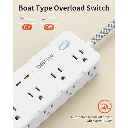 Power Strip Surge Protector, 5FT Braided Extension Cord with Multiple Outlets-8 AC Outlets 4 USB Ports (2 USB C), 1700 Joule Surge $13 Prime Ship AMAZON