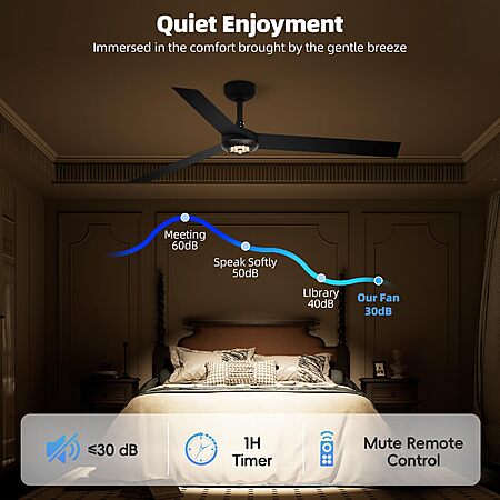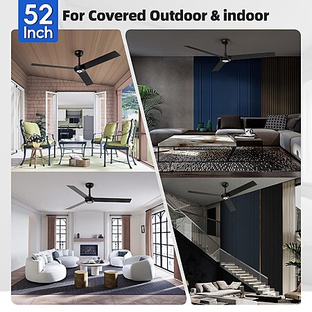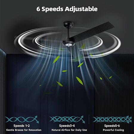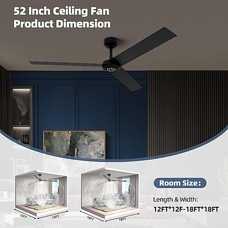 Amazon.com: TALOYA 52 inch Modern Ceiling Fan with Lights,Remote Control,3 Metal Blades,Black Finish,6-Speed,Dimmable, Noiseless Reversible DC Motor,Indoor Ceiling Fan for Living Room Bedroom : Tools & Home Improvement