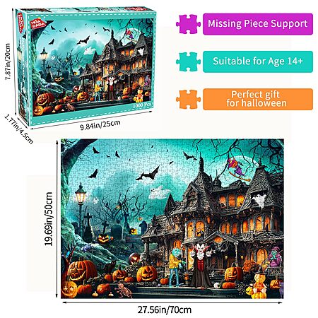 - 【 After-Sales Support】: If you find that you are missing a piece to your Halloween 1000 piece puzzle, we will replace it with a puzzle of the same image without question or qualification