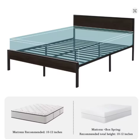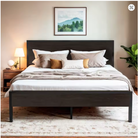 Hoomic Metal Platform Bed Frame w/ Wooden Headboard (Black Oak, Full) $67.79 + Free Shipping