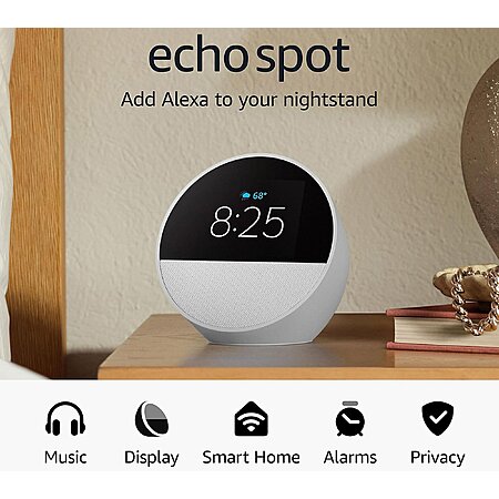 Amazon Echo Spot Smart Alarm Clock w/ Alexa (2024 Model, Black) $39.98 + Free Shipping