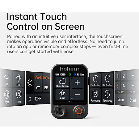 A detachable 1.2" touchscreen remote gives you total wireless control up to 32.8' away. View a live feed of the AI tracker, adjust gimbal settings, lighting, and shooting modes, or initiate quick tracking and subject reframing—all without touching your phone. Scenario presets, such as auto pan, auto roll, panorama, and time-lapse, make cinematic shots easier than ever.