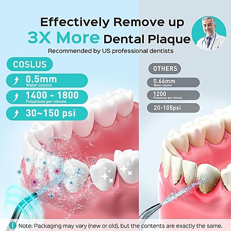 Model: COSLUS Water Dental Flosser Pick for Teeth: 4 Modes Cordless Portable 300ML Larger Tank Water Teeth Cleaner IPX7 Waterproof Flossing Cleaning Picks for Home Travel Black C30(FC5360)