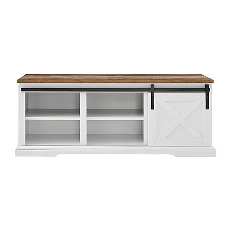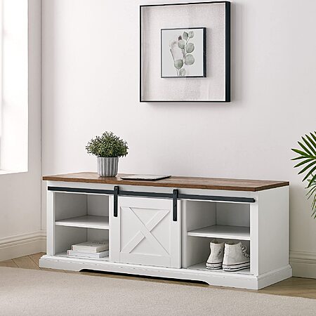 48-Inch Walker Edison Rustic Farmhouse Sliding Barn Door Shoe Cabinet Storage Indoor Bench w/ 3 Shelves (White/Rustic Oak) $84.99 + Free Shipping