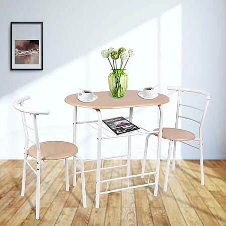 Mainstays 3-Piece Metal Wood Dining Set, White and Beech Color for Indoor $50