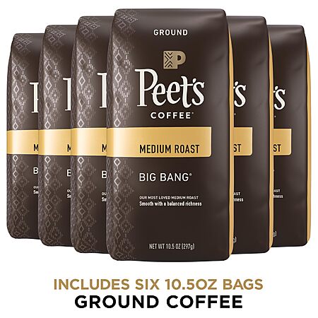 6-Pack 10.5-Oz Peet's Ground Coffee (Big Bang, Medium Roast) $33.44 ($5.57 Each) & More w/S&S + Free Shipping w/ Prime or on $35+