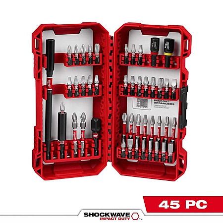 45 piece Milwaukee SHOCKWAVE Impact Duty Alloy Steel Screw Driver Bit Set, $18.97, free shipping, Home Depot