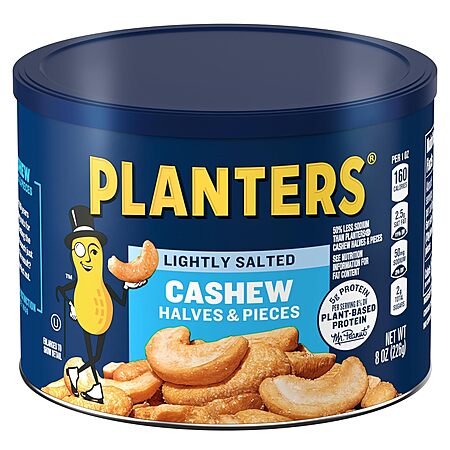 PLANTERS Lightly Salted Cashews, Cashew Halves & Pieces, Plant-Based Protein, 8 Oz Canister, Great Party Snack~$4.01 With S&S @ Amazon