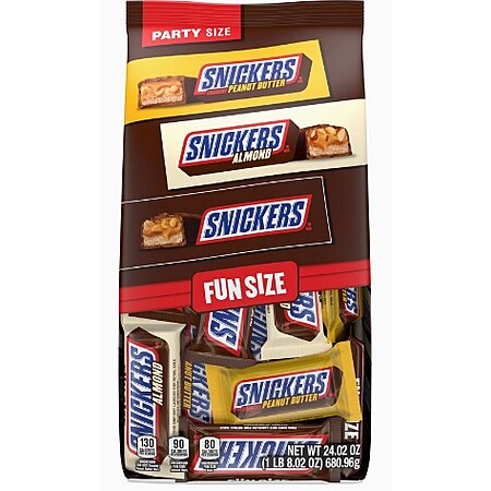 - There's a 200ct 77oz all-chocolate bag for the same price at some locations. It has M&Ms, Peanut M&Ms, Snickers, Twix, and Milky Way<br />