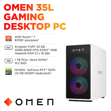 YMMV: HP OMEN - 35L Gaming Desktop - AMD Ryzen 7 8700F - 32GB DDR5 Memory - NVIDIA GeForce RTX 5070 - 1TB SSD - Panda Metal - Open Box $1218.99