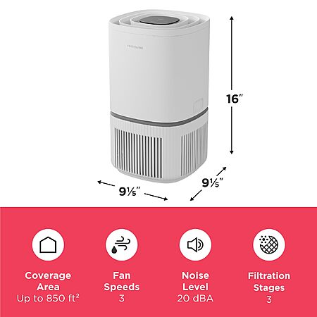 Frigidaire PureA300 3-Stage HEPA Air Purifier for Small Bedrooms, Covers up to 850 Sq. Ft. (White) $87.84 + Free Shipping
