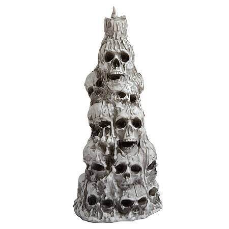 This 3-FT lighted skull stack with flickering yellow flame and color changing body will create a perfect ambience for porch or living room. Incredible glowing effect at night powered by 7 internal LED lights. Solid base with 10-FT Power Chord. Haunted Living 3-ft Lighted Skull Stack | KL-37021