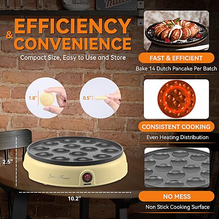 Baker's Friend Mini Pancakes Maker Machine (Yellow) $23.99 + Free Shipping w/ Prime or on $35+
