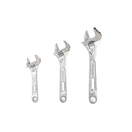 This set includes three of the most essential wrenches: 6in adjustable wrench, 8in adjustable wrench and 10in adjustable wrench. Use these wrenches for loosening and tightening bolts and other fasteners. Precision-machined, extra-wide jaws offer versatility to the user...you can use these wrenches on both metric and saw fasteners. Drop-forged chrome vanadium steel provides exceptional strength while the chrome plating provides rust-resistance. Whether you are working around the house, in the garage, or at the work site, you'll reach for these tools again and again. Kobalt Adjustable Wrench Set 3 -Piece | 55748